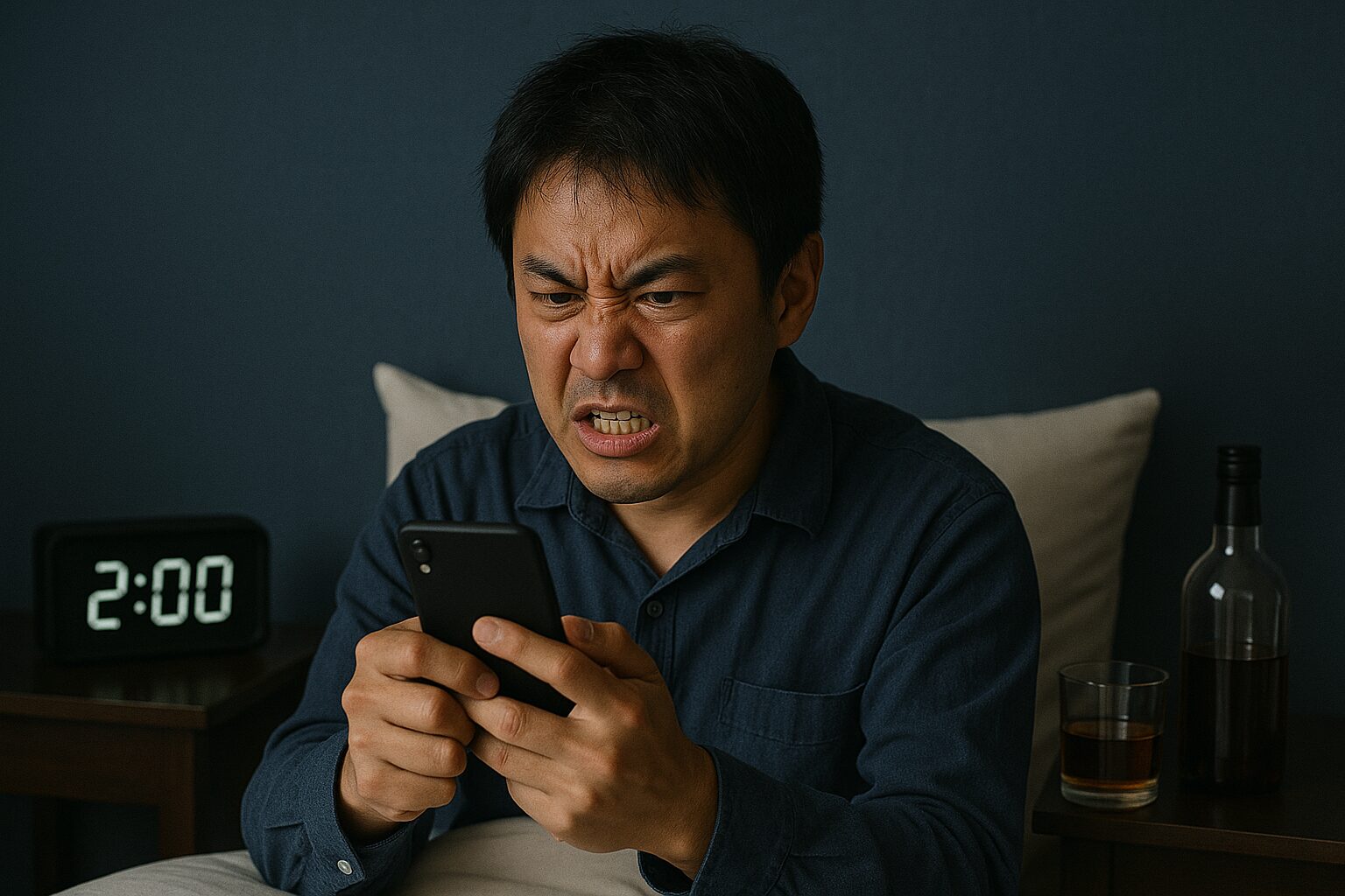 夜も更け、午前2時あたりを過ぎてくるころ。あなたは、怒りを思い出して一人、腹を立てたことはないか? 私は結構な頻度で、ある。そんなときは、深夜のテンションに加えて酒も入っているから、たいてい怒りがエスカレートするのだ。